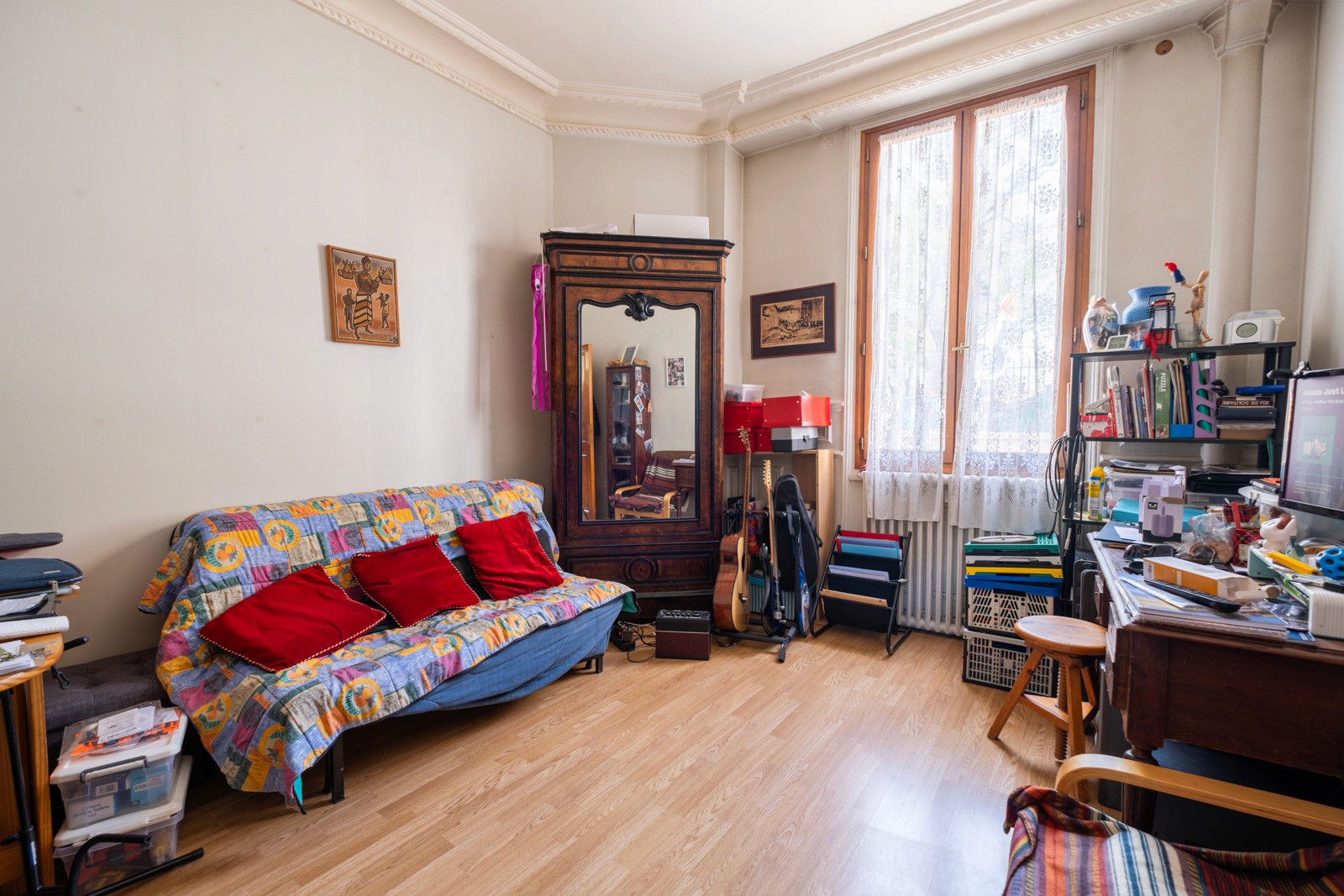 - Belle hauteur sous plafond, cheminée et moulures d'origine conservées.